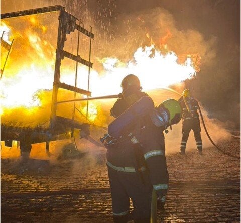 Bombeiros agem rápido e combatem incêndio em caminhão com produto altamente inflamável na BR-262