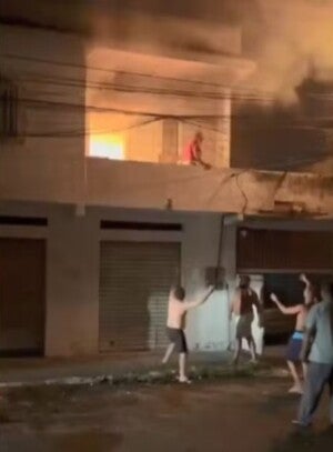 De acordo com testemunhas, moradores arrombaram o portão da casa e acessaram o imóvel mesmo com o incêndio em andamento.