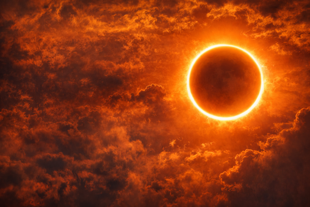 Um eclipse solar anular é um fenômeno astronômico que acontece quando a Lua passa entre a Terra e o Sol, mas não consegue cobrir totalmente o disco solar. Nesse alinhamento, o satélite natural aparece menor do que o Sol, deixando visível um anel luminoso ao redor, efeito popularmente conhecido como “anel de fogo”.