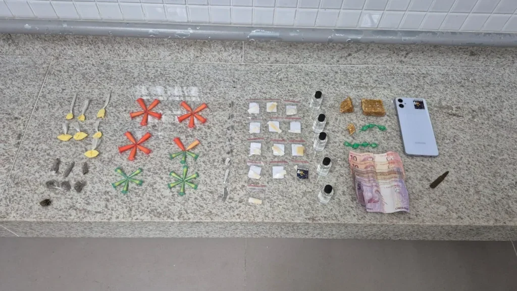 Com o suspeito, os policiais apreenderam drogas, munições e dinheiro. Ele foi encaminhado à Delegacia Regional de Vitória.